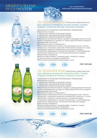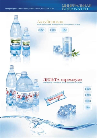 В связи с ПМЖ продаётся новое зарегистрированное в конце 2008г. месторождение целебной минеральной лечебно-столовой воды "Астраханская" и завод по её бутилированию, построенный в 2008 году в г.Ахтубинск, Астраханской области. Вода прошла государственную регистрацию и сертификацию в Москве, документы за подписью Онищенко. Сертифицирован в Москве и освоен выпуск питьевой очищенной воды "Дельта-премиум", газированной и без газа во всех объёмах фасовки от 0,5 до 19 литров. Установлено 2 линии: автоматическая для воды и ручная для напитков, 5л., 19л. Емкостей. Разработана рецептура, сертифицированы в Москве и выпущена рекламная партия холодные чаи 4 сортов из немецких натуральных компонентов. Отработана рецептура и начата подготовка к сертификации сладких газированных напитков "Крем-сода", "Байкал", "Тархун", "Ситро" и т.п. Документация и производство в безупречном состоянии, готово к работе на проектной мощности 12000 литров в смену.