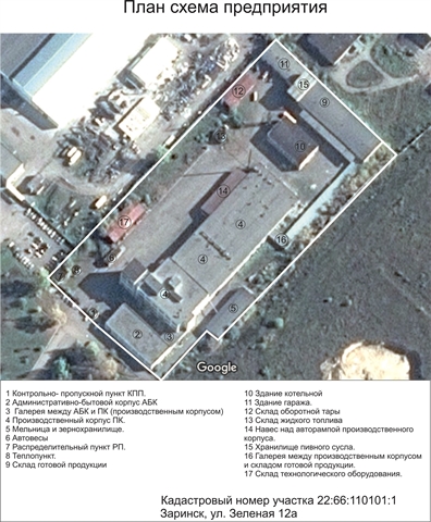 - 1.Здание распределительного пункта(энергообъект), 53,8 кв.м. одноэтажное2.Здание контрольно-пропускного пункта, 13,3кв.м 1 этаж3.Здание гаража 349,9 кв.м . 2 этажа4. Здание АБК (административно-бытовой корпус с галереей) 1480,7 кв.м. 2 этажа5. Здание автовесы 69,2 кв.м. 1 этаж6. Здание котельной 542,1 кв.м. 1 этаж7. Здание производственного корпуса ПК 7583,6 кв.м. 3 этажа8. Здание склада