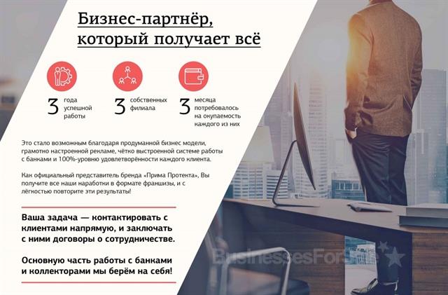 Продается готовый настроенный бизнес по предоставлению юридических услуг заемщикам. Функционирующий бизнес, стабильные прибыли начиная с 1 дня, настроенная рекламная кампания, обученный персонал и оборудованный офис. Всю деятельность юридическую деятельность ведет главный офис, в задачи собственника входит оказывание консультационных услуг и контроль рекламных акций. Полная поддержка обеспечена. Рентабельность очень высокая более 57%. НЕ ФРАНШИЗА! Подробную информацию вышлю на почту или по телефону
