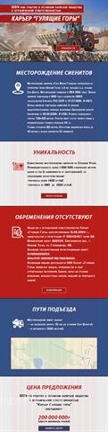 Карьер строительного камня с перерабатывающим комплексом Местонахождение: Свердловская область, район г. Кировград Форма собственности: ООО (Свидетельство о государственной регистрации 2008 г.) Продаваемая доля: 100 % Обязательства, обременения: отсутствуют. Юридическая чистота учредительных, правоустанавливающих документов, нормативной и кадровой документации, аудит бухгалтерской отчетности. Проверки по линии ГНИ, МПР, Ростехнадзора. Документация: Лицензия на право пользования недрами до 2039 г. Полный комплекты разрешительной, геологической, отчетной документации, все необходимые согласования. Производственные характеристики: характеристики сырья: Плагиограниты месторождения (светло-серые среднезернистые массивные породы) характеризуются очень высокими прочностными показателями, низкой гамма-активностью (1 класс по СП 2.6.1.758-99). Предварительный объем запасов в проектных границах около 3 000 тыс.м3. Инфраструктура: Полное энергообеспечение карьера и узла ДСУ, автодорога, сооружения производственно-бытового назначения. Выпускаемая продукция: Щебень гранитный всех фракций, скальный грунт, бутовый камень. Продукция отвечает требованиям действующих ГОСТов и стандартов, может использоваться в качестве заполнителей тяжелого бетона, балластного слоя железнодорожного пути, дорожных и других видов строительных работ без ограничений. нами сделано: - переоформлен землеотвод и лицензия; - расконсервация, ревизия и запуск оборудования; - вскрышные работы и выход на «чистые пласты»; - получены сертификаты на выпускаемую продукцию и заключение СЭС; - ввод дополнительного сортировочного оборудования; - увеличен парк вспомогательной техники на переработку; - технико-экономическое обоснование проекта; - организовано подразделение доставки; - анализ рынка сбыта, создание клиентской базы. Цена предложения: 42 700 000 рублей.