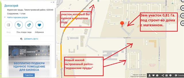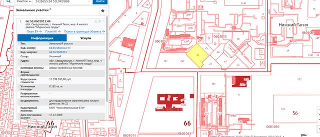 ЗЕмельный участок. Н Тагил. ГГМ. Удовенко. Новый жилой район-Муринские пруды. Планировалось строительство многоподъездного жилого 9-этажного жилого дома. (По соседству жилой дом Удовенко 10 и Булата Окуджавы д3.) Кадастр номер 66:56:0601013:44 КОммерческая земля. 0,81 Га.в аренде. Напротив Новых домов Булата Окуджавы. Есть фундамент, но старый. Цена по согласованию. Под строительство Многоэтажного дома или строительство под коммерцию.