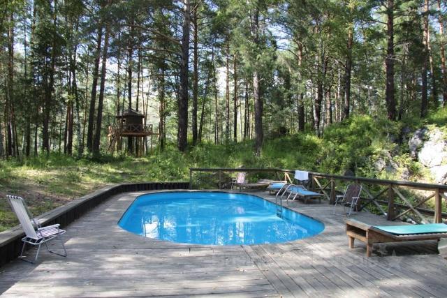 - Расположена на берегу Катуни, в 15 км от аэропорта, в 15 минутах езды до нескольких горно-лыжных комплексов, теплых озер, туристических зон и объектов.