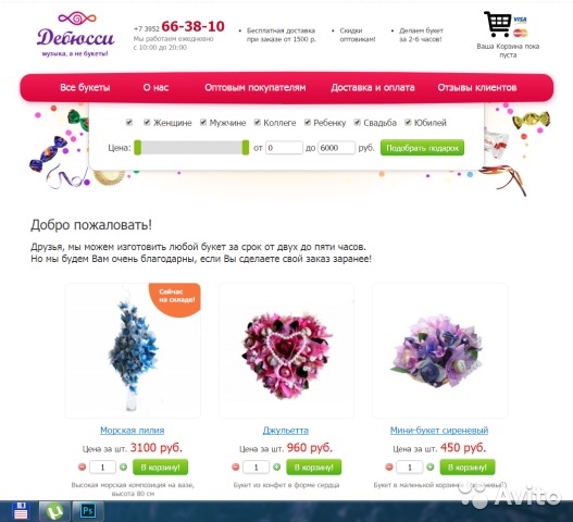 Продаётся интернет-магазин по продаже букетов из конфет - лидер в Иркутске. Год открытия - 2013. Доход за последний год - 310 000 р. Причина продажи - нет времени заниматься! Участие в выставках, оплаченное место в Сибэкспоцентре на Новогоднюю ярмарку-2017, номера телефонов, почты, активные аккаунты в Инстаграм и ВК, оборудование, материалы, обучение. Огромная клиентская база, сотрудничество с крупнейшими компаниями Иркутска. Управление интернет-магазином простое.