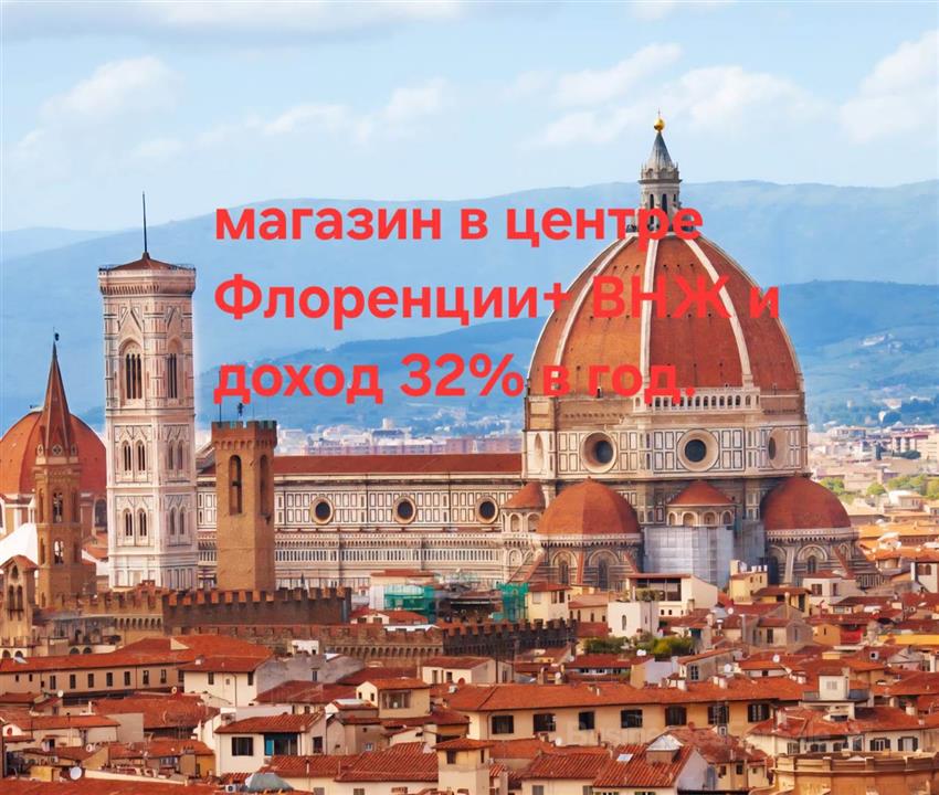 Идеальная ИТАЛЬЯНСКАЯ ИНВЕСТИЦИЯ - магазин одеджы- бутик в центре Флоренции С НЕМЕДЛЕННЫМ ДОХОДОМ – ОЦЕНКА 10/10 – с арендатором, готорый давно и исправно платит и все договора аренды и доход застрахованы в крупнейшей СК, поэтому при желании ВНЖ сразу. Это не просто шикарная недвижимость- Это уже работающий инвестиционный объект с доходностью 32% в евро в год, 21000 евро. Это значит одно: покупаете сегодня — зарабатываете с первого дня заключения сделки, и деньги отправляются на любой счет. Красивый большой магазин в самом центре, 97 м кв+ большой склад, великолепный ремонт и оборудование, ничего не требует дополнительных вложений. Полный сервис - все оплачивают арендаторы, ничего самим делать не надо, доход задеклартрован давно, вся документация для ВНЖ нового собственника готова. Цена: €69.000 Возможен торг исключительнпри наличии реального интереса и финансовой готовности сразу заключить сделку. Примем оплату у нотариуса в любой валюте даже в рф в рублях. Это очень редкий вариант- недвижимость в Золотом треугольнике! Просьба обращаться только при реальной заинтересованности. +393318061425 Елена, собственник, прямая продажа.