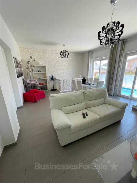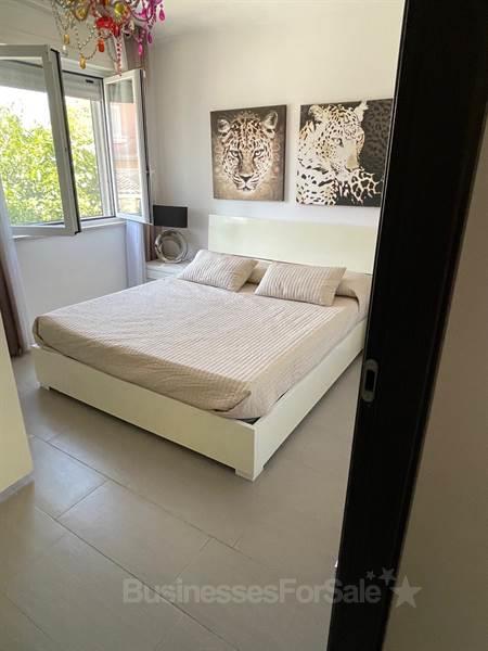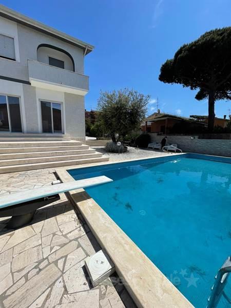 Площадь 300 кв.м, 2 этажа, салон, хобби-зал с камином и тренажерами, кухня, 4 двухместных спальных комнаты, 3 ванных, балконы, крытая меблированная терраса, wi-fi, кондиционеры, автономное отопление, оборудованные зоны для релакса и барбекю, бассейн, парковка, охранная система. Вилла меблирована, кухня полностью оборудована, расположена в 300 м от моря в районе Lido delle Sirene с развитой инфраструктурой, вблизи регионального заповедника Тор Кальдара, целебных источников и грязей. Расстояние до Рима 60 км, до аэропорта Фьюмичино 50 км, до папской резиденции Кастель - Гандольфо 25 км