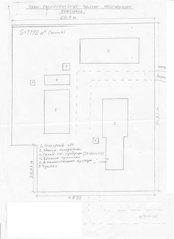 - Земля 5592 м2. Склад, туалет, здание пилорамы, столярный цех, здание сушилки, накопительные бункура.