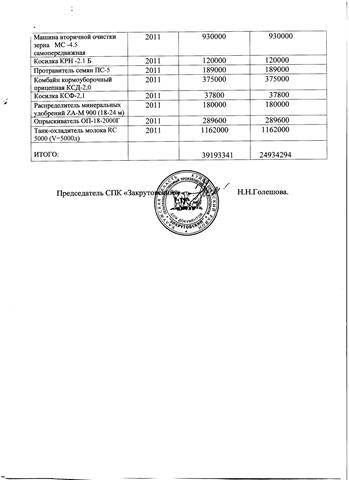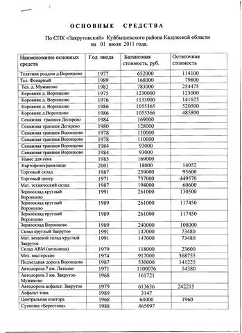 СПК «Закрутовский» находится в 300 км от Москвы в Куйбышевском районе Калужской области. Колхоз работающий, безубыточный. Количество работающих – 47 человек. Общая площадь земли – 3000 га, из них 2100 га – пашня. Оформлено в собственность – 2100 га. Имеется 450 голов КРС, из них 270 – дойное стадо. Среднегодовой надой составляет 900-950 т молока. На территории колхоза располагается комплекс на 800 голов КРС, требующий реконструкции для внедрения современных технологий содержания коров, сенажные траншеи – 6 шт, зерносклад круглый – 4 шт, навес для сена, материально- вещевой склад, механические мастерские, автозаправка, крытый ток, торговый склад, торговый центр, пилорама. Также в наличии имеется вся необходимая техника для обработки земли, посева, уборки и приготовления кормов. Колхоз располагается в живописном месте, кругом леса. На территории есть озеро площадью более 60 гектаров. Земли на территории колхоза от суглинистых до супесчаных. Наиболее пригодны для выращивания картофеля, льна, рапса и других масличных культур.