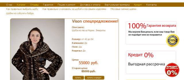 Действующий интернет-магазин шуб и изделий из меха