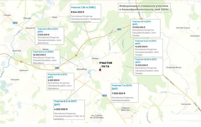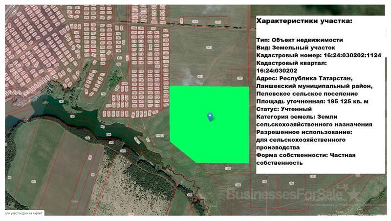 Предлагаю отличный вариант для инвестиций и развития бизнеса! Земельный участок площадью 19 га в Пелевском сельском поселении Лаишевского района, всего в 40 км от Казани! Все знают, что Татарстан, а в частности Казань и вся территория рядом активно развиваются. Идёт активная застройка и развитие туристических направлений. В последующем участок можно поменять на ИЖС и размежевать на 150 отдельных участков и каждый продать не менее, чем за 1 млн. руб. (В перспективе минимум ~150 млн. руб) К участку ведут очень хорошие подъездные пути, асфальтированная дорога прямо до участка. Имеется выход на озеро, полное рыбой. Преимущество участка в том, что рядом активно идет застройка ИЖС с двух сторон, поэтому скоро эта земля будет стоить больших денег! Не упустите возможность приобрести землю на выгодных условиях. Участок граничит с ИЖС с двух сторон, а значит перевод из СХ в ИЖС без особых проблем! Также возможен перевод под Туризм и сделать большую базу отдыха! Базы отдыха сейчас очень востребованы, так как активно развивается внутренний туризм. Договор на подключение к Электроэнергии уже заключен, проект трассы согласован, деньги оплачены, будет подведено к границам участка в августе 2024 г. Kaтeгoрия зeмeль: Земли сельскохозяйственного назначения, разрeшeнное использованиe: для сельскохозяйственного производства. Кадастровый номер: 16:24:030202:1124 Природа прекрасная. Рядом лес и озеро. Отличное место для отдыха, купания и рыбалки. Строится новая трехполосная дорога в каждую сторону, в объезд Сокуров (сдача 2024 год). До участка по деревне идеально ровный асфальт (положили в 2023г). Можно использовать под агротуризм! Ведь недавно Дума приняла закон о праве фермеров размещать туристов в гостевых домах на сельхозземлях. Госдума приняла сразу во втором и третьем чтении закон, предоставляющий фермерам право временно размещать туристов в гостевых домах, расположенных на землях сельскохозяйственного назначения. Документ, инициированный правительством РФ, вносит поправки в законы "О развитии сельского хозяйства" и "О крестьянском (фермерском) хозяйстве". В 20 км находится г. Лаишево, который скоро станет Туристическим местом Татарстана! И скоро будет реализован проект Казань Марина! СОБСТВЕННОСТЬ! Документы в порядке, НИКАКИХ ОГРАНИЧЕНИЙ НЕТ! Два взрослых собственника. Без паев, без наследств, без обременений и без долгов, чистая сделка, сразу ДКП в МФЦ и участок Ваш.