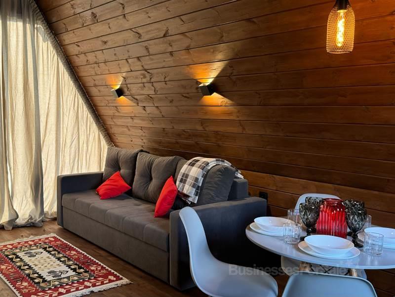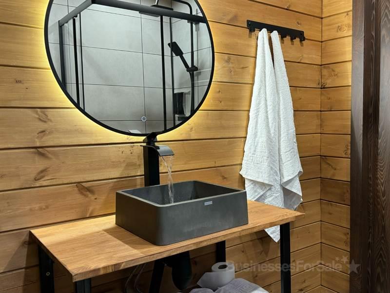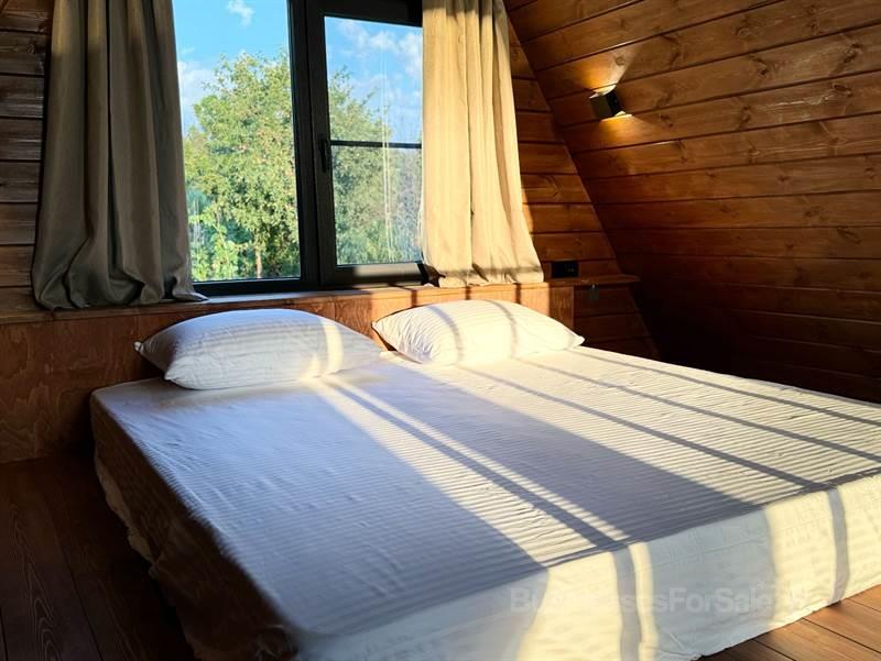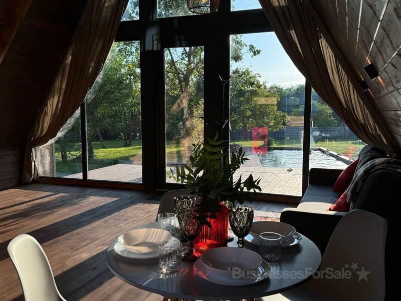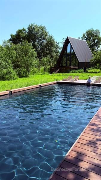 В продаже новый загородный отель, все новое, в работе меньше года. Место идеально: угловой участок, окруженный лесом с двух сторон, рядом протекает река. * Земельный участок в собственности, есть возможность расширения. * Три дома афрейм с улучшенной планировкой и дизайнерским интерьером, полностью готовые к использованию. * На террасе каждого дома — горячая купель фурако. * Большой бассейн 12 на 6 метров с зоной отдыха. * На участке много деревьев, которые мы постарались сохранить при строительстве. * Потенциал участка использован только на 40%, оставляя пространство для дальнейшего развития. * Проложена дорога и обустроена парковка. * Есть техническое помещение, которое можно использовать как склад или водоразборный узел с возможностью подключения газа для подогрева бассейна. * Оборудованы мангальная и костровая зоны. * Газ подведен к участку. * Каналы продаж настроены. Если вы действительно заинтересованы, звоните. Я с радостью отвечу на все ваши вопросы и обсудим детали. Мы открыты к диалогу.