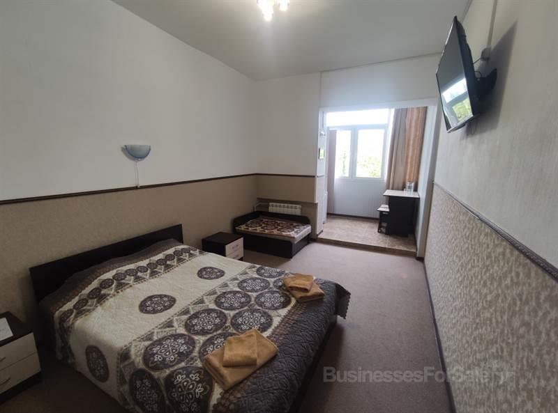 Санаторий "Урал" в Сочи. Лазаревским район, микрорайон Лазаревское, Сочинское шоссе, 6/2. Площадь санатория 1785 м. Земельный участок площадью 41 соток. Фонд санатория составляет 50 номеров. Имеется медицинская лицензия. 8 кабинетов медицинской части. Оказываются медицинские и косметические услуги. Работает питание по системе "Шведский стол". Все номера меблированы с собственной ванной комнатой. В номерах ТВ, кондиционеры и холодильники. Закрытая парковая благоустроенная территория. Имеется собственный оборудованный пляж. Паркинг для гостей на территории санатория. Санаторий действующий с полной наполняемостью. Имеется возможность строительства на территории ещё одного корпуса. Поблизости вся необходимая инфраструктура для комфортной курортной жизни, включая: пляжи, кафе, рестораны, парки, торговые центры, аквапарк и супермаркеты. Расстояние до моря 250 метров.