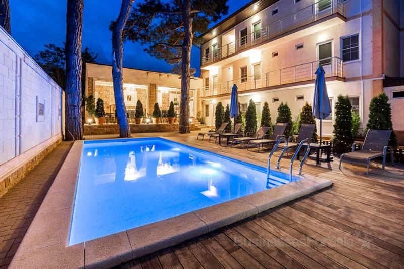 - ОписаниеПредлагаю к продаже гостевой дом 2014 года постройки в самом центре города .На земельном участке 6,5 сотки расположен комплекс ,состоящий из трёх зданий .1ый дом 265 кв.м 4 номера(2 с кухнями,2 двухкомнатных)+ на первом этаже хозяйская квартира 80 кв.м .2 дом 170 кв.м 3 этажа 9 однокомнатных номеров. Кафе. Гараж.Бассейн с подогревом .Коммуникации все центральные+скважина.О зданииГотовность: в эксплуатацииТип здания: жилой домПарковка: на улице, бесплатнаяКоличество парковочных мест: 10