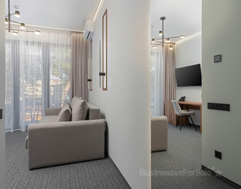 Предлагаю вашему вниманию современный и новый отель, построенный в 2023 году, который находится на первой линии от моря. Это атмосферное место, созданное с использованием самых передовых технологий, расположено в самом сердце Геленджика, всего в нескольких шагах от центральной набережной и основных достопримечательностей курорта. В отеле 28 роскошных номеров, которые идеально подойдут для комфортного проживания. Для удобства деловых гостей в отеле имеется ресторан, а его расположение в центре города обеспечивает комфортную деловую среду. Отель имеет статус 4-звездочного, а к зданию подведены все необходимые коммуникации, что создает все условия для вашего комфортного отдыха.