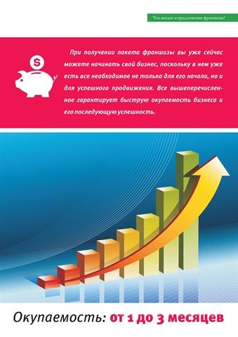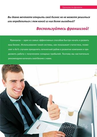 Франшиза - один из самых эффективных способов быстро начать и развить ваш бизнес. Использование такой системы, как показывает статистика, позволяет в 80% случаев преодолеть пятилетний рубеж в развитии компании и продолжить работу с получением солидных прибылей. Поэтому мы настоятельно рекомендуем начинать свой бизнес с нами. Почему именно "РеАктив"? 1. "РеАктив" гарантирует получение прибыли с самого старта бизнеса. По статистике доход от продажи услуг в агентстве "РеАктив" на 20- 30% выше, чем у других рекламных агентств. При покупке франшизы "РеАктив" Вы получаете полностью автоматизированный бизнес. И помните: количество открывающихся фирм постоянно растет – а с ними растет и Ваш доход. 2. "РеАктив" избавляет Вас от ненужных затрат. Посудите сами: открывая рекламное агентство, Вы вынуждены вкладывать деньги буквально в каждую "мелочь": от разработки фирменного стиля, изготовления вывески и рекламных материалов до обустройства офиса и обучения персонала. "РеАктив" предлагает Вам готовый фирменный стиль и оформление офиса, а это значит – никаких затрат на разработку дизайна. "РеАктив" создает для Вас cайт в Интернете. И, наконец, "РеАктив" помогает Вам в подборе и обучении сотрудников. Мы не ограничиваемся отписками или устными консультациями, а даем Вам настоящий курс теории и практики рекламного бизнеса. 3. "РеАктив" предоставит Вам уникальную систему, которая позволяет создавать и хранить базу данных всех клиентов, вести эффективную и четкую работу с заявками, заполнять и распечатывать документы. Также представлена вся необходимая документация для полноценной работы офиса, от коммерческих предложений и договоров с клиентами, до правил создания рекламного предложения и основных законодательных актов. Эксклюзив на ваш город. С помощью нашей системы Вы сможете успешно контролировать работу компании и вести работу с клиентской базой. 4. "РеАктив" предоставляет Вам консультационную поддержку. "РеАктив" имеет собственную Единую справочную службу, куда Вы можете позвонить и решить любой вопрос, в том числе, получить консультацию профессиональных юристов. Таким образом, франшиза от "РеАктив" увеличивает Ваши шансы на хорошую прибыль и существенно снижает риски. 5. Мы поможем Вам начать самостоятельное путешествие во вселенную бизнеса. Конечно, мы не сможем двигаться вперед за Вас, но мы гарантируем: "РеАктив" будет вашим успешным стартом, в котором для вас не будет ограничений по рекламе, чем бы вы не захотели заниматься после его полного автоматизирования! Если Вы готовы действовать, тогда добро пожаловать! Стоимость франшизы зависит от численности населения вашего города.