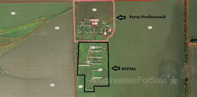Продаю ферму Краснодарский край, Ленинградский район, хутор Изобильный, участок 10,5 га, кад.№ з/у 23:19:1101000:450, здания коровников 7 штук, площади коровников от 800 до 1100 кв.м., большие, кормоцех - отдельно стоящее здание, всего построек 8 шт., все строения в собственности, земельный участок в собственности. Электричество - ТП в 30 метрах от фермы, нужно получать ТУ, свободная мощность на ТП имеется (КубаньЭнерго), Газ - подстанция в пяти метрах от фермы, нужно получать ТУ, свободная мощность имеется, Вода - делать скважину примерно 25 метров. Применение: возможно переоборудование корпусов в круглогодичные теплицы сделать в них аквапонические установки для выращивания грибов, зелени и овощей. На открытой территории (порядка 7 га) можно выпасать кур (яйцо, мясо) и/или барашков. Все строения в собственности, под их восстановление можно получить субсидии в бюджете!!!