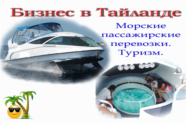Ищу партнера инвестора ( 50\50) для совместной работы . Открытие совместного бизнеса в Тайланде. Направление бизнеса Морские пассажирские перевозки. Туризм. ( катер на подводных крыльях Looker – 30 пассажиров) Морской туризм: -обзорные экскурсии на затонувшие корабли и рифы, ( катер с прозрачным дном Looker- 28 пассажиров) -морские прогулки, - рыбалка, - дайвинг. Сумма инвестиций - 25000000 руб. Проект долгосрочный, с дальнейшей перспективой развития. Имею опыт работы в Крыму в данном направлении более 20 лет.