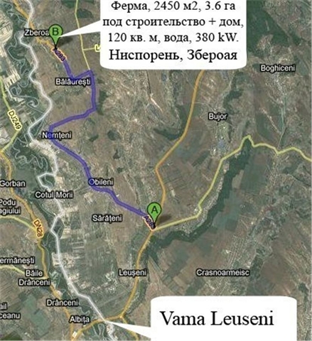 По любым вопросам звонить по +373 60 180 595 или skype - "kutsenko_md" (ЧАСТНЫЙ ВЛАДЕЛЕЦ не агенство) Any questions you have, do not hesitate to call me anytime at +373 60 180 595 or skype me at "kutsenko_md" (Private OWNER not the agency) ********************************** Ферма + Склад, 2450 м2, 3.6 га под строительство+15га.сель хоз, дом (120 кв.м на территории), вода, до газа 500м, 380kW. - Обмен на жильё. - Комплекс здания площадью - 2500 м2 (113х22 м). - Земельный участок - 3.6 га под строительство на территории комплекса+15га.сельхоз-угодий. - Дом, 120 м2 на территории под офис/жилье. - Склад для хранения корма в комплексе. - Содержание более 2500 голов скота. - Состояние строений отличное - быстрый запуск предприятия. - Электричество, 380 kW, газ в 500 м, вода питьевая и на территории колодец. - Удобная транспортная доступность. - 15 км от Леушенской границы. - Форма собственности – частное лицо. Предназначено для свинофермы, свиноводства, производства мяса свинины, или молочно-товарная ферма, крупный рогатый скот (КРС), птицеводство, производство яиц пищевых, мясо куриное и т. д. *************************** Farm + Warehouse, 2450 m2, 3.6 hectares for the construction of 15 ga.sel DHW, house (120 sq ft in the area), water and gas to 500m, 380kW. - Exchange on housing in Europe or for SALE. - Complex Building area - 2500 m2 (113x22 m). - Land - 3.6 hectares under construction at the complex 15-ga.agricultural land. - House, 120 m2 in an office / housing. - A warehouse for storing food in the complex. - Content of more than 2500 heads of cattle. - Condition of buildings excellent - quick start businesses. - Electricity, 380 kW, gas in the 500 meters, drinking water and in the pit. - Easy access to transportation. - 15 km from west border Romania. - Ownership - private person. Intended for the pig farm, pig, pork meat, or dairy farm, livestock (cattle), poultry and egg production of food, meat, chicken, etc.