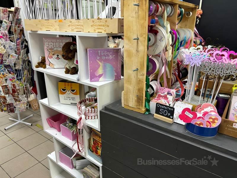- - Переуступка прав аренды помещения 59 квадратных метров- Весь товарный остаток свежих цветов и комнатных растений- Открытки, подарочные упаковки и так далее- Весь товарный остаток магазина игрушек- Мебель, оборудование, стойка Суммарно мат. активы на 1.2 млн рублей