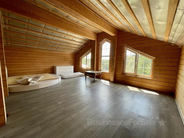 Современное шале в швейцарском стиле из клееного бруса, площадью 588 м2 в экологически чистом районе Подмосковья на лесном участке 40 соток с вековыми соснами. Идеальный вариант под эко-отель (20-25 номеров, кафе, спа, активный отдых) ✔️Основной дом выполнен по индивидуальному проекту. Площадь дома 588 м2, 3 этажа, просторный холл со вторым светом, кухня-столовая 57 м2, 10 просторных комнат (можно добавить еще 10-15 номеров), терраса по всему фасаду, множество лоджий и балконов, высокие потолки. - Дом построен из клееного бруса камерной сушки максимально возможной толщины (200 мм). Строила дом компания GOODWOOD – лидер на рынке загородных домов из клееного бруса в России. - Кровля выполнена из натуральной керамической черепицы Braas (Великобритания) - Окна имеют двухкамерные стеклопакеты ✔️Второй дом (возможное назначение – спа-комплекс), площадью 179 м2: полностью готов к проживанию. - 2-х этажное здание из оцилиндрованного бревна диаметром 300 мм, с террасой и балконами, а также камином и 3-мя просторными номерами, кухней-гостиной 42 м2, сауной и террасой 11 м2. - Первый этаж отапливается водяным теплым полом, второй – радиаторами - Фундамент - монолитная плита - На улице, сразу при выходе из сауны построена большая купель, также из оцилиндрованного бревна ✔️Хозблок, площадью 116 м2, представляет собой 2-х этажное здание, в котором расположена бойлерная с газовым котлом и системой очистки воды, комната для хранения инвентаря, гараж и комната для персонала. ✔️Участок – это отдельная история! Он крайний к старому сосновому лесу, имеет почти идеальную прямоугольную форму и площадь 40 соток. На самом участке большое количество взрослых сосен и плодовых деревьев. ✔️Все коммуникации подключены: центральный газ, вода (своя скважина), септик, электричество 30 кВт, интернет. Все строения зарегистрированы, имеется вся проектная документация. ✔️Дом находится в городском округе Раменское, д. Захарово, 15 минут до города Раменского, 10 мин до ЦКАД, 40 км до МКАД. Вся инфраструктура в десятиминутной доступности. Изначально дом строили для себя и своей большой семьи, но обстоятельства изменились. В доме никто не жил, один собственник, все документы в порядке и готовы к сделке. Реальному покупателю – торг при осмотре.