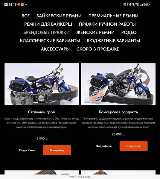 Интернет-магазин, бренд ремней, с товарами