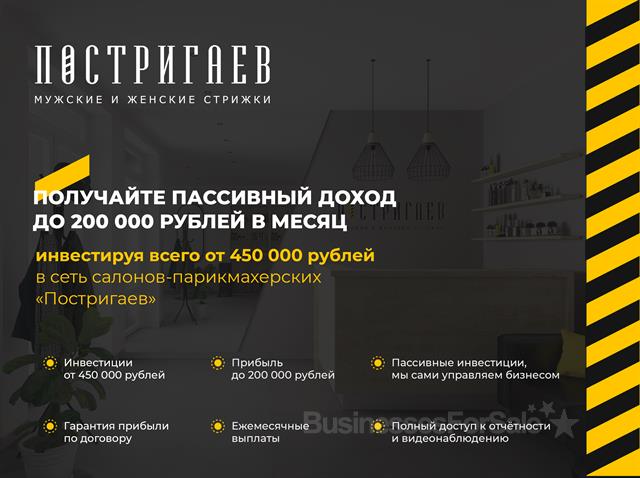 Получайте ежемесячный пассивный доход до 200 тыс. руб./в месяц, инвестируя всего от 450 тыс. руб. в сеть салонов-парикмахерских «Постригаев» в Москве. В ЧЕМ СУТЬ БИЗНЕСА? Оказание парикмахерских и нейл услуг, с отличным клиентским сервисом, профессиональными мастерами, для тех, кто ценит качество и сервис по доступной цене. ПРИБЫЛЬ ИНВЕСТОРА ПО ДОЛЯМ В МЕСЯЦ - ИЗ РАСЧЕТА СР. ЧИСТОЙ ПРИБЫЛИ В 250 000 РУБ./МЕС.: ✅ Вложите 450 000 руб., получайте пассивно = 25 000 руб./мес. (доля 10%) ✅ Вложите 900 000 руб., получайте пассивно = 50 000 руб./мес. (доля 20%) ✅ Вложите 1 350 000 руб., получайте пассивно = 75 000 руб./мес. (доля 30%) ✅ Вложите 1 800 000 руб., получайте пассивно = 100 000 руб./мес. (доля 40%) ✅ Вложите 2 250 000 руб., получайте пассивно = 125 000 руб./мес. (доля 50%) * Рентабельность капитала от 60% до 300% в зависимости от суммы и сроков вложения. ** Более 5 млн. рублей - обсуждаем индивидуально. ✅ СРЕДНЯЯ ОКУПАЕМОСТЬ ИНВЕСТИЦИЙ - 16-20 МЕС. ⁉️ ОТВЕТЫ НА ЧАСТЫЕ ВОПРОСЫ: - Зачем? Какая цель? 1. Открываем собственные точки с нуля. 2. Выкупаем готовые парикмахерские, делаем ребрендинг и выводим на высокую чистую прибыль. 3. Наша цель на 2020 год - 10 собственных парикмахерских в г. Москва, и 10 фрачайзи-партнёра. ⁉️ - Что требуется от инвестора? (спойлер-ничего): 1. Инвестору не нужно участвовать в опер. деятельности. 2. Инвестор имеет доступ ко всей отчетности компании. 3. Инвестор имеет доступ к камерам, размещаемым в салонах-парикмахерских. - Мы на рынке парикмахерских "у дома" более 2-х лет. Под брендом "Постригаев" - 6 месяцев. - 6 успешно действующих салонов-парикмахерских, 1-а в процессе строительства. - Мы успешно и положительно работаем с инвесторами, и займодавцами с 2018 г., в наличии рекомендательные письма от инвесторов. - Мы готовы на любые ваши проверки, и предоставить все документы - при подтверждении, что у вас есть свободные средства для комфортного инвестирования. - Я собственник ИНН 861711219384, на меня оформляется договор инвестирования или займа (возможно поручительство юр. лица, в котором более 1 учредителя). - Да, в банке дешевле, но этот ресурс уже использован. - Рассматриваем долевое участие и займ. - Скидка на все услуги парикмахерской для вас на весь период участия в доли или займа - 20%). ⁉️ КАК ЗАРАБАТЫВАЕТ парикмахерская «Постригаев»? 1. Стрижки, наращивание, окрашивание 2. Коррекция бровей, ресницы 3. Ногтевой сервис У вас есть возможность инвестировать в одну из открытых студий в Москве и получать прибыль с первого месяца. ПИШИТЕ, Пришлем презентацию, договор и ответим на все вопросы! Звоните! P.S. На фото наши инвестора)
