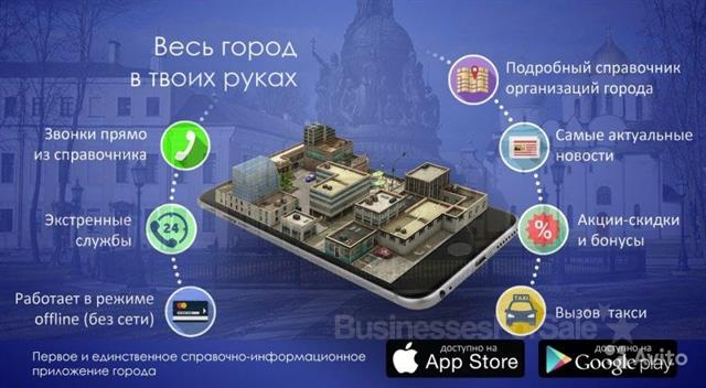 Продаётся действующий, приносящий пассивный доход, IT-бизнес. Мобильное приложение франшизы «Мой Город», владею городом Химки, Московская область. Приложение было вторым в этой франшизе после Зеленограда, то есть создавалось вместе со всей франшизой. Раньше очень плотно занимался и это приносило хороший стабильный доход. Важно понимать следующее: просто так сидеть на попе ровно особо не получится, только если устраивает доход в 20 тыс руб., всё время нужно вести поиск рекламодателей, хоть и порой они сами спрашивают о размещении. Если же хотите выжимать с приложения от 100 тыс и более, нужно ежедневно этим заниматься, закидывать рекламу в таргет, всячески раскручивать. У меня на все это на данный момент нет ни времени, ни желания, инвестирую в другой бизнес, а данное приложение можно сказать в «заморозке», что-то приносит, есть не просит, и ладно. Ежемесячные обязательные затраты всего 6600 руб. !!! Нужен человек, который будет гореть этим делом и даст новый импульс к развитию, ЛИБО это шикарная находка для рекламного агентства, потому что вы можете продавать рекламу в это приложение допом к основным своим услугам! Что я сейчас и делаю) Ещё это отличный ресурс для взаимодействия с государственными учреждениями! Функционал приложения позволяет размещать новости, акции, афиши / киноафиши, делать рассылку push- уведомлений, запускать трансляции и многое другое, настраивается под различные индивидуальные запросы. Звоните, пишите, все расскажу/покажу.