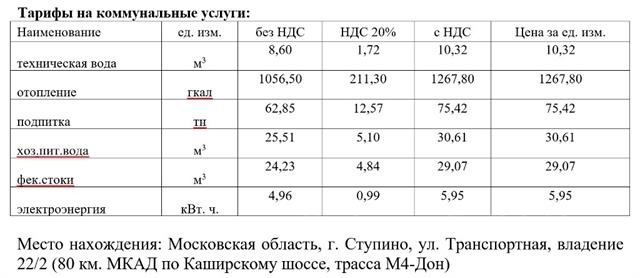 В 80 км. МКАД по Каширскому шоссе, трасса М4-Дон, продается новый современный склад на территории складского комплекса в г. Ступино Московской области. Ул. Транспортная вл.22с2. Возможна производственная деятельность. Площадь здания 10 585,42 кв. м. Этажность здания - 1этаж, офисные помещения (293 м2) - 2 этажа. Тип кровли – мембрана. Высота до низа фермы - 8,6м. Шаг колонн 24*12. Электричество 500 кВт (с возможностью увеличения). Полы - бетон, "антипыль". Ворота в количестве 8 шт. (высота 4,2 м, ширина 4 м). Помещение имеет: отопление, водоснабжение, канализацию, вентиляцию, систему пожаротушения, пожарную сигнализацию, ip -телефонию, скоростной интернет. Комфортабельные офисные помещения. Огороженная, освещенная территория. Круглосуточное видеонаблюдение. Столовая, общежитие. Рассматривается как аренда (Стоимость аренды за 1 м2 в месяц без учета НДС: - производственные (складские) помещения – 275 руб - вспомогательные (офисные) помещения – 550 руб, так и продажа объекта. Стоимость данного объекта 380 000 000 руб. + НДС (20%). В стоимость входит земельный участок 2,3 Га. (в собственности).