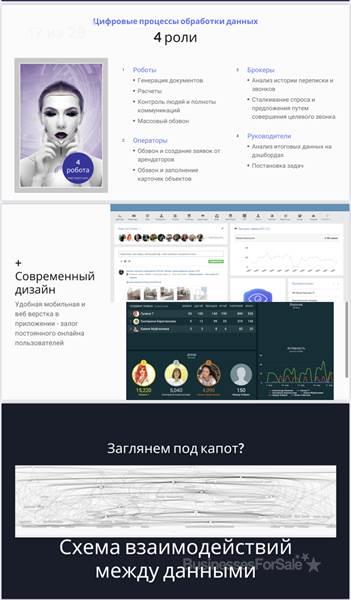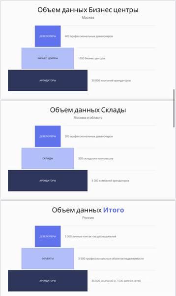 - Компания предлагает услуги собственникам и выступает как агенство недвижимости, но при этом услуга лидогенерация осуществляет сбор интересантов а интересах других агенств недвижимости, которые имеют договора об эксклюзиве с крупными собственниками объектов (большая пятёрка консалтинг компаний)