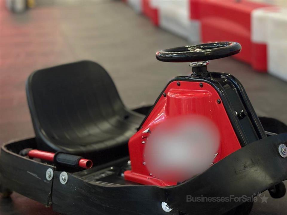 - 8 дрифт картов, 5 машинок на ДУ управлении. Наполнение трассы - напольная плитка ПВХ - 170 кв.м., борта - более 120 шт; арка, перекат на трассе: Арка перед трассой; ресепшен с оргтехникой, стол для фотографа с компьютером Эпл, цветным принтером, 2 дивана