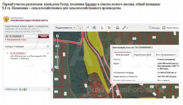 Продам крестьянско-фермерское хозяйство Цель создания фермерского хозяйства: 1.Выращивание и оптовая продажа трав и листьев сушеных. 2.Выращивание и оптовая продажа трав (сборов) в сочетании с ягодами и фруктами 3. Производство самостоятельного чайного напитка из трав и сушеных ягод. 4. Сушеные листья растений в сочетании с травами и ягодами 5.Производство и оптовая продажа сушеных фруктов. 6.Производство и оптовая продажа сушеных ягод Состав имущества: два земельных участка размером 8,8 га и 73 га. д. Берхино, Луховицкого района на праве долгосрочной аренды. Первый участок расположен вдоль реки Осетр, поселения Берхино и участка лесного массива, общей площадью 8,8 га. Назначение – сельскохозяйственное для сельскохозяйственного производства Второй участок расположен на стрелке двух рек – Осетра и Оки, общей площадью 73,1325 га, не далее одного километра от первого участка с той же стороны реки Осетр, проезд – грунтовая дорога. Назначение – сельскохозяйственное для сельскохозяйственного производства На участке 8,8 га возведен дом 2 этажа без отделки. Осуществлено строительство, монтаж и подключение подстанции ТП-160/10/0,4 кВ, ВЗЛ-10 кВ от опоры б/н фидер 13 ПС № 611 «Городна». цена по запросу. торг.