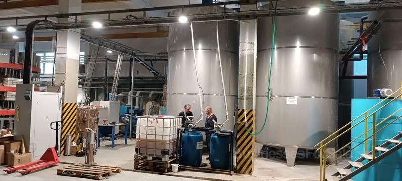- Производственный комплекс включается в себя:- Полностью автоматизированный участок массоподготвки состоящий:- 2 гидроразбивателя- 7 массных бассейна по 27 куб.м каждый- Рафинера- Автоматический станции дозирования и подачи химикатов- Системы общего управления системой массоподготовки1. Производственная линия HTM-35002. Вакуумная установка с тремя ресиверами3. Компрессорная установка4. Участок обрезки, контроля качества и упаковки готовой продукции.
