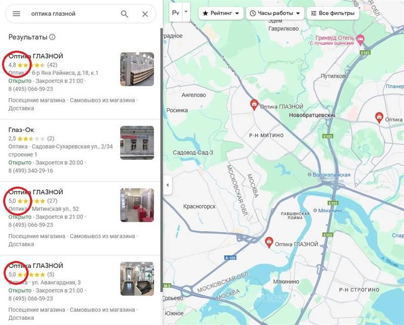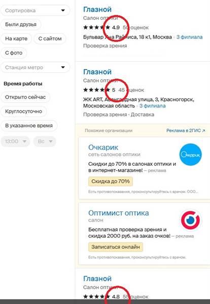 Сеть из 3х салонов оптики в Москве (СЗАО)
