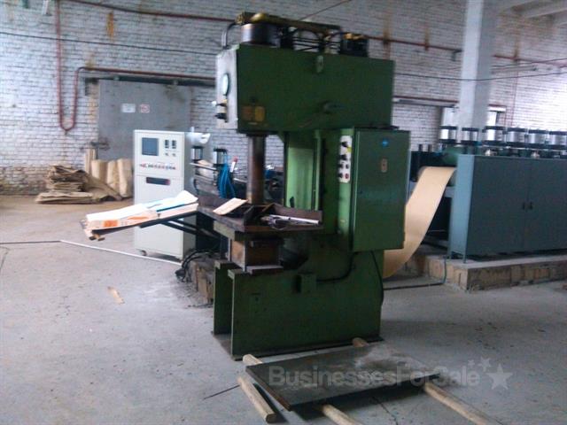 - ) Машина для изготовления бумажных мешков для сыпучих материалов GUOYAN MACHINERY модель GYWFD-800 W, 2012 г.в.2) Крупноформатная печатная машина FLEXIBLE PRINTING MACHINE, 2011 г.в.3) 2 станка для формирования дна открытого и закрытого бумажного мешка УСД-6М, 2006 г.в.4) Пресс гидравлический, 40 тонн, 1977 г.в.5) Электрическая паровая баня на 400 литров с электромотором