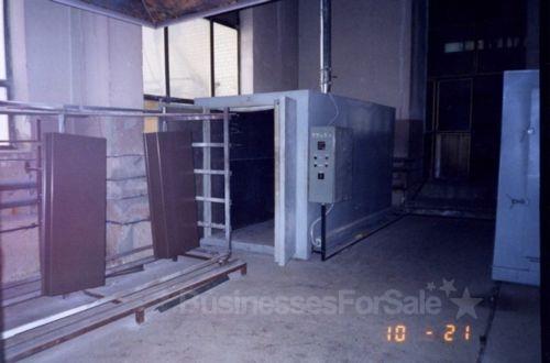 Камера полимеризации проходного типа с верхней загрузкой с внутренними размерами печи (ДхШхВ): 4100х1600х1800 мм, мощность 36Кв. Верхняя транспортная система на четыре продольных направляющих (макс. эффективная загрузка), грузоподъемность 1000 кг. Система вытяжки, пистолет-распылитель, ресивер, компрессор. Арендуется отапливаемое кирпичное помещение 90 кв.м. на производственно-ремонтном предприятии в Калининском районе, стоимость аренды в месяц 250 руб/кв.м. Стоимость всей линии, вместе с передачей прав аренды – 220 000 т.р.