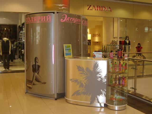 Вертикальный солярий с кабиной для раздевания + стойка администратора + витрина для косметики. Аренда 20000 руб/мес. Срочно! Торг!
