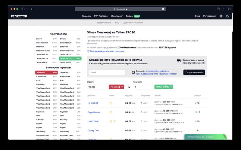 Мониторинг (агрегатор) обменников криптовалюты