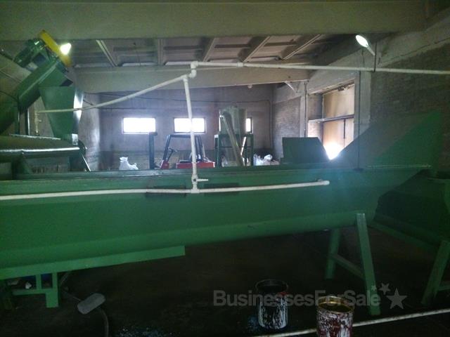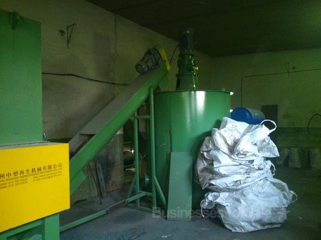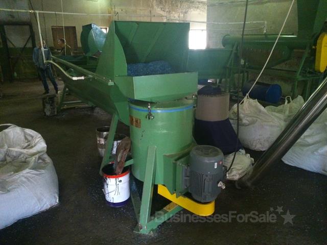 Линия переработки ПЭТ сырья. Конечный продукт - ПЭТ-флекс. Технологическое оборудование: Ленточный конвейер→ дробилка → шнековая подача материала → паровая моечная машина → шнековая подача материала → высокоскоростная фрикционная мойка →установка полоскания→ установка полоскания → центробежный водоотделитель → трубопроводная сушилка →накопительный бункер. Дополнительно к линии приобретен новый заточной станок и сушилка с этикеткоотделителем.