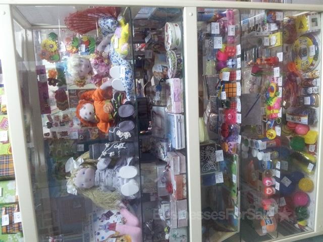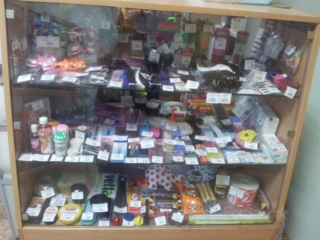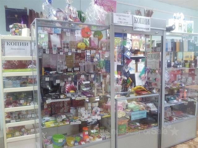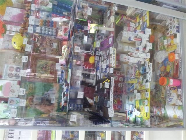 В ассортименте:канцтовары, игрушки, батарейки, резинки д/волос, расчески, маникюрные принадлежности, хозтовары, полотенца и многое другое. Все документы в порядке. Оборудование в хорошем состоянии:2 стекл.стеллажа, стекл.выкатная тумба, 2дерев.стеллажа, роль-ставня, боковые витрины. В стоимость входит:товар, оборудование, кассовый ящик, стол, стул, выносной рекламный штендер, наружный рекламный банер, МФУ.