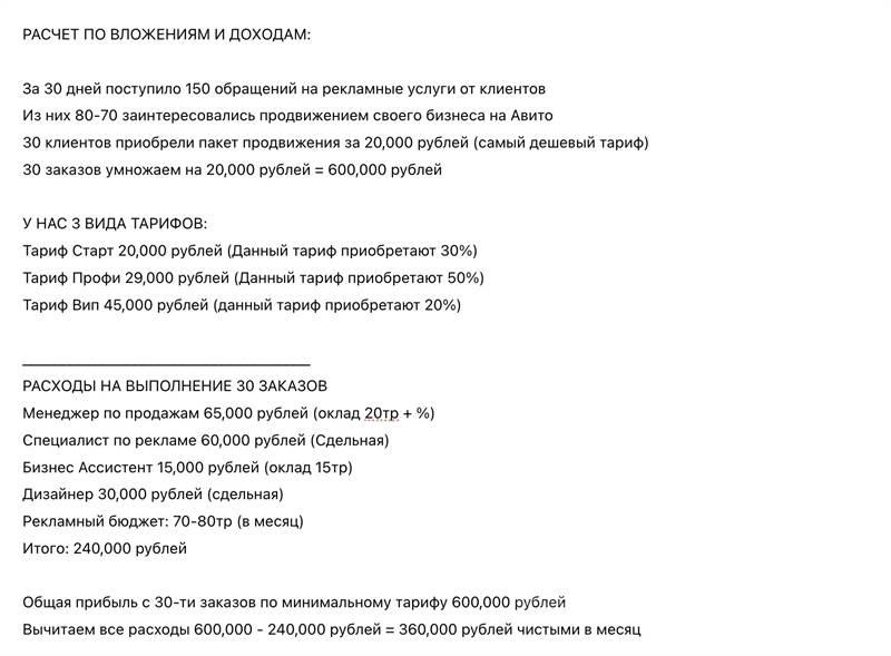 Рекламный бизнес онлайн с доходом от 350тр в мес Все что вам необходимо делать, это контролировать рекламный бюджет. Все остальное за вас выполнит обученная команда профессионалов. Причина продажи: смена сферы деятельности. С моей же стороны полная поддержка и обучение нового владельца по всем деталям рекламного бизнеса в течение 60-ти дней. - - - - - - - ? О БИЗНЕСЕ: Бизнес работает более 3-х лет, за последние 12 месяцев оборот по доходам достиг 7,000,000р 4,5000,000 рублей чистыми заработок за год c вычетом всех расходов. В июле сделали скачок и заработали 1,000,000 рублей из них 650,000 чистыми. Мы предоставляем рекламные услуги предпринимателям и физ лицам на площадке авито, увеличиваем количество продаж благодаря нашим наработанным инструментам, обученной команде специалистов, за наши услуги заказчики нам платят от 20тр до 45,000р за месяц ведения профиля, вся необходимая команда уже собрана, продажи идут, в момент покупки бизнеса команда и все наработки вместе с креативами рекламных компаний остаются у вас для дальнейшнего использования и привлечения прибыли. - - - - - - - КОМАНДА, профессионально обученные менеджеры, в команде: менеджер по продажам который закрывает клиента на сделку, общается в чатах и отвечает на звонки, бизнес ассистент который заключает договора, согласовывает информацию с клиентом для запуска и запускает проект в работу, авитолог который занимается продвижением на авито и ведением аккаунтов клиентов, дизайнер который создает креативы по инфографике, юрист который помогает в случае недопониманий с клиентами и урегулирует вопросы по закону. - - - - - - - ЧТО ВХОДИТ В КОМПЛЕКТ БИЗНЕСА: 1. Продающе раскрученный бизнес аккаунт + второй рабочий профиль. 2. Команда профессионалов, менеджер по продажам, авитолог, бизнес ассистент 3. Контакты проверенных исполнителей, дизайнеры, создание сайтов, реклама Яндекс и ВК 4. Сайт по рекламным услугам (служит визиткой для клиентов) 5. Видеоотзывы заказчиков + наработанные креативы по графике и дизайну 6. Договора по оказанию услуг для ИП, ООО и Физ лиц, договора по работникам 7. Контакт опытного юриста для решения юридических вопросов в работе. 8. Доступ к проверенным инструментам продвижения и аналитики в Авито 9. Готовые вакансии с видеообучение новых сотрудников при необходимости 10. Стратегия по продвижению рекламных услуг (время, день, город + доп инструменты) 11. Стратегия по масштабированию бизнеса по крупным рабочим городам России 12. Видеообучение по каждому бизнес процессу в деталях 13. Готовые скрипты продаж и тарифные планы рекламных услуг 14. Сопровождение запуска в течение 60 дней 15. Окупаемость вложений в течение 3-4 месяцев ТАК ЖЕ ПРЕДОСТАВЛЮ ОТЧЕТЫ ПО ДОХОДАМ ЗА 12 МЕСЯЦЕВ - - - - - - - Сопровождение с моей стороны вас до 350,000р далее с полученными знаниями и сотрудниками вы развиваете бизнес на более высокий доход либо же работаете с уже действующими доходами, далее + 2 месяца лично от меня вы можете обращаться по любым рабочим вопросам, проконсультирую и не оставлю вас. Поделюсь ценными знаниями по запуску рабочих ниш в авито которые вы можете запускать совместно с рекламными услугами и зарабатывать дополнительно +100тр в мес. ПОД МОИМ КОНТРОЛЕМ МЫ СОВМЕСТНО С ВАМИ ЗАПУСТИМ ВАШ ПАССИВНЫЙ ДОХОД - ПОЛНОСТЬЮ ОНЛАЙН С ДОХОДОМ ОТ 4.5 МЛН В ГОД И БОЛЕЕ, ВЛОЖЕНИЕ ОКУПАЕТСЯ ЗА 3-4 МЕСЯЦА - БИЗНЕС ОСТАЕТСЯ У ВАС ПОЛНО