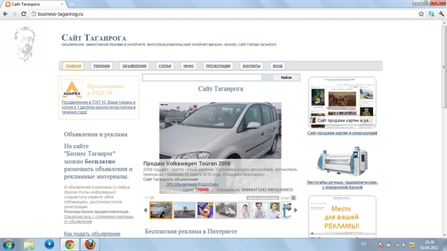 Активно развивающийся городской- портал. Движок сайта сделан на ASP.NET MVC 4.0 компанией LLC SharpSoft – такой движок позволяет выводить объявления клиентов в ТОП яндекса и гугла за короткий срок. Посещаемость сайта 10000 в месяц (целевой аудитории) Вся прибыль от рекламы. Есть функция многопользовательского магазина – ещё одна возможность получения прибыли. Любой товар размещенный в таком магазине , так же будет в ТОП поисковиков.