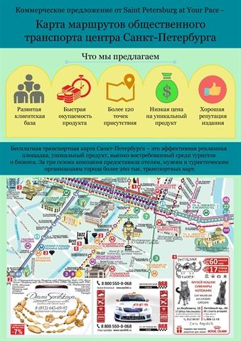 ОПИСАНИЕ: Продаем бесплатное издание для туристов, единственную в городе карту маршрутов общественного транспорта. Заработок на рекламе. Возможна продажа карт отелям. ИНФОРМАЦИЯ ОБ ИЗДАНИИ: ✓ Формат А3 (можно увеличить до А2) ✓ Общая рекламная площадь - 1500 кв. см. ✓ Окупаемость - 2 месяца ✓ Развитая база клиентов (более 200 компаний) ✓ Среди постоянных клиентов - магазин кожи и меха "Снежная королева", музей "Петровская Акватория", сеть баров "СПб", такси "068", судоходная компания "Нептун". ✓ Широкая сеть распространения - более 120 музеев, отелей, галерей + трамваи и троллейбусы города ✓ Хорошая репутация издания ✓ Высокий спрос на продукт со стороны туриста ✓ Годовой доход - 1 200 000 р. (при тираже 100 000 карт/год) При увеличении формата издания до А2 и/или тиража, карта может окупиться уже после первого издания. База клиентов может быть использована для других Ваших проектов. Продается в связи с нехваткой времени на развитие, так как параллельно заняты другими туристическими проектами.