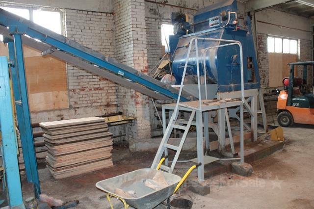 - - Стационарный вибропресс отечественного производства в отличном состоянии,- 6 комплектов пресс-форм ( 2 вида плитки, 2 бордюра, 2 стеновых камня)- Автопогрузчик Toyota 2.5 тн., газ/бензин, хорошее состояние,- 70 стеллажей с поддонами (8000 руб/шт),- материалы в производственном цикле (цемент, краситель, отсев, песок, керамзит)Заключен договор аренды с "Любанским фанерным комбинатом" до 31.12.2011 с возможностью пролонгации. S=250 м2 - 30000 руб. Все коммуникации, о