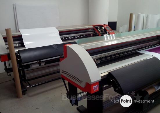 - Оборудование (2 широкоформатных плоттера (1,8 м рабочее поле, ламинатор (1,4 м рабочая ширина), режущий плоттер (1,2 м рабочее поле), компьютеры - 8 шт., мебель на 6 рабочих мест)