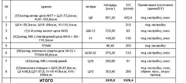 - Площадь земельного участка Общая площадь земельного участка 38 Га; незастроенная и возможная к застройке-12 Га. Земельный участок находится в собственности Категория земли – земли промышленности.Общая площадь неиспользуемых зданий до 30 000 кв.м. Право собственности на все объекты недвижимости оформлено. Промплощадка имеет спокойный рельеф с уклоном планировочных плоскостей на северо-восток, север