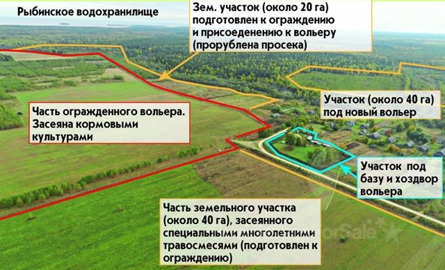 Срочно продается за полцены отличный, полностью обустроенный, действующий вольер-охотничье ранчо на берегу Рыбинского водохранилища (Ярославская область), для охоты (круглый год) и разведения оленей, ланей, кабанов, зайцев на мясо и на племя. Земли с/х назначения, для разведения охотничьих животных), частная собственность, есть возможности для неограниченного расширения вольера. Полная инфраструктура: - длина заборов из сетки 9300 п.м; - более 3000 шт. металлических столбов; - ворот и калиток 27 шт; - прорублено более 4500 п.м. просек; - устроено 5800 п.м. проселочных дорог; - 10 мостов; - 17 вышек; - 5 прудов; - 45 га засеянных многолетними травами кормовых полей; - комплекс биотехнических сооружений; - сельхозтехника и многое другое. Себестоимость вольера, в том числе земельных участков, всех сооружений, построек и других материальных ценностей, расположенных на нем и хоз.дворе, составляет 50 628 000 руб. (Подробная калькуляция стоимости вольера предоставляется по запросу). Сейчас (до 5 июня 2016 года) вольер продается со скидкой 45% - всего за 28 500 000 руб. То есть бери и сразу наслаждайся природой, охотой в любые сроки, развивай бизнес! И главное: 1) Вы экономите 23 млн. руб. 2) два года жизни и кучу нервов; 3) все, включая землю и животных - Ваша собственность! Смотрите подробности на сайте volyer- oleny.ru. Буду рад все подробно рассказать. Звоните не откладывая!