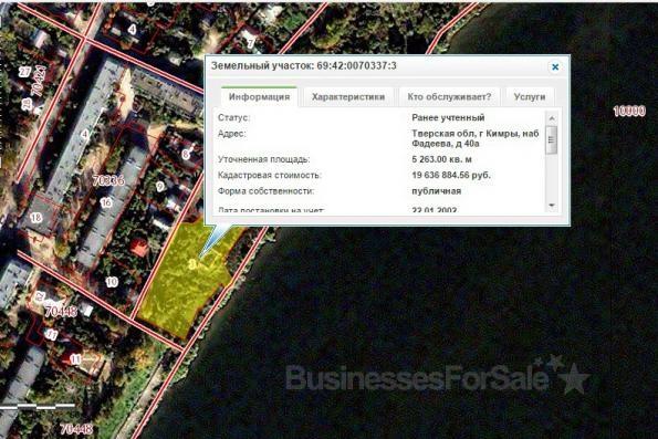 Тверская область, г. Кимры, 135 км от МКАД по Дмитровскому ш., наб. Фадеева, д.40а. Участок 52,63 сотки, на берегу реки Волга. На участке здания артскважины, водонасосной станиции. Категория земель: земли населенных пунктов. Разрешенное использование по классификатору: для размещения туристических баз, станций, домов рыболовов и охотников. Разрешенное использование по документам: реконструкция существующих строений и строительство водно-спортивного комплекса. Имеется готовый проект по строительству Водно-спортивного комплекса. Земельный участок находится в аренде до 2052 года с возможностью выкупа. Кадастровый номер участка на публичной карте: 69:42:0070337:3