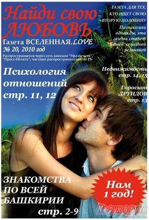 Продается 50% бизнеса. Возможно долями. Возможна рассрочка на 6 месяцев. Единственная газета знакомств в Башкирии "Вселенная.love",издается с 17 ноября 2009 года), возможно развитие бизнеса, продажа по всей России, газета яркая, цветная, 16 стр., формат А4, посвящена браку, семье, с бесплатными объявлениями о знакомстве, распространяется через сеть киосков Уфа-Печать, Пресс-Печать, УФПС по РБ, частных распространителей по всей Башкирии. Сайт www.vselennaya-love.ru. Подробности по телефону: 8-965-921-0322 .242-19-12