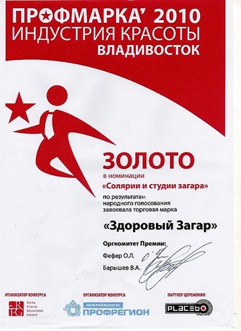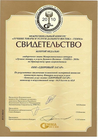 Продаются два салона "Здоровый загар" во Владивостоке как франчайзинг. Салоны являются частью холдинга «Здоровый Загар»™, который специализируется на продаже эксклюзивных продуктов на рынке искусственного загара – соляриев ExpressTan, установок для моментального загара и косметики для загара Fiji. Холдинг «Здоровый Загар» имеет 2 салона во Владивостоке и 1 салон-франчайзинг в Москве, созданный в 2011. Салоны работают с 2008 года, расположены в ТЦ с большой проходимостью: самом центре города и в спальном районе. Салоны рентабельны и доходны, с большой клиентской базой и раскрученным брендом. Чем отличается сеть "Здоровый загар" 1. Мы работаем на американских экологичных соляриях, рентабельность которых в 2 раза выше любых других. 2. Самое главное в работе наших салонов - мы оказываем только безопасные для здоровья услуги искусственного загара, используя американскую схему, технологии и знания, создавая таким образом базу лояльныx клиентов. 3. Мы готовим свой персонал к работе, обучая по методике американского института искусственного загара SmartTan. 4. Мы оказываем франчайзинговую поддержку всем нашим салонам. Больше информации о салонах смотрите на нашем сайте в интернете zagar1.ru,, там также есть презентационный видеоролик. Заслуженная репутация Салоны работают более 3,5 года и имеют общественное признание - грамоты и награды. Смотрите на нашем сайте. Самые последние: 1. "Золотая Медаль в отборочном этапе Межрегионального конкурса "Лучшие товары и бренды Дальнего Востока ГЕММА-2010" в Приморском крае. По результатам заключения независимой экспертной комиссии наивысшую оценку Конкурса получили услуги салона "Здоровый Загар" 64 балла из 65 возможных." Декабрь 2010. 2. "В финальном этапе конкурса "Лучшие товары и услуги Евразии - ГЕММА" услугам компании ООО "Здоровый загар" была присуждена наивысшая награда - Золотая статуэтка ГЕММА по Дальневосточному Федеральному округу." Июль 2011.