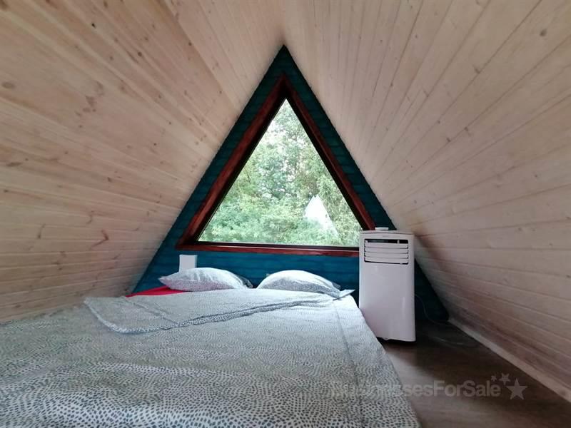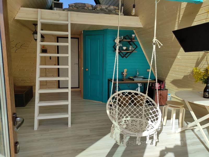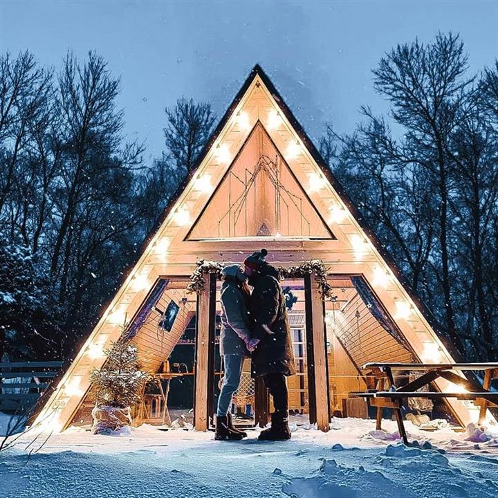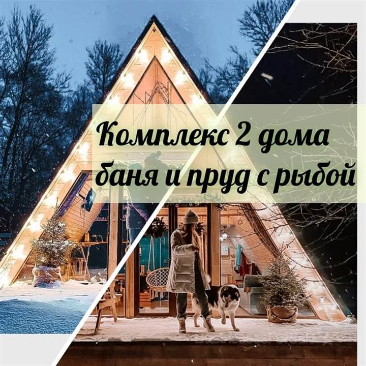 Комплекс из 2х треугольных домов, пруда с рыбой и бани на 8 человек