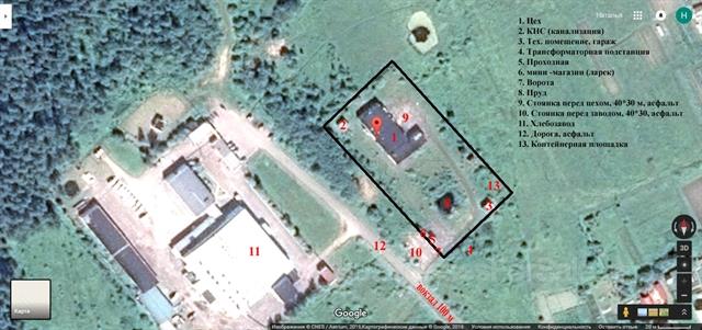 - 1) Двух этажный цех, назначение нежилое, Общая 542м2, Высота потолков 4,7 м.2) Проходная, общая площадь 8м2.3) Земельный участок для обслуживания производственной базы, категория земель: земли поселений, общая площадь 65 соток. 4) Трансформаторная подстанция, общая площадь 21,5м2, эл. Мощность подстанции составляет 160 кВт5) Канализационная - насосная станция, общая площадь 17,4м2. Коммерческие условия.6) Мини-м